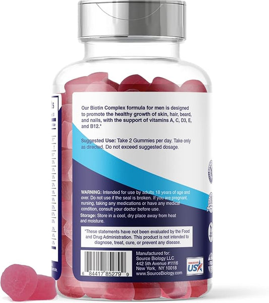 Biotin 5000 Mcg Complex - Hair, Beard, Skin, Nails Formula for Men - High Potency Vegan Friendly Gummies - with Vitamins A, C, D3, and B12