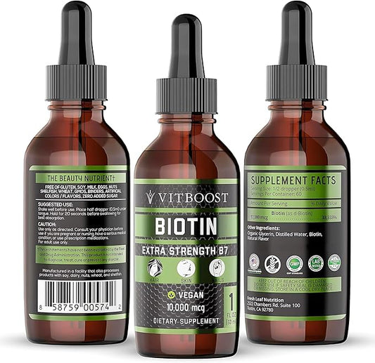 Extra Strength 10,000mcg Biotin Liquid Drops with Organic Berry Flavor | 60 Servings | Vegan Formula Supports Hair Growth, Strong Nails, Healthy Skin | NO Artificial Preservatives
