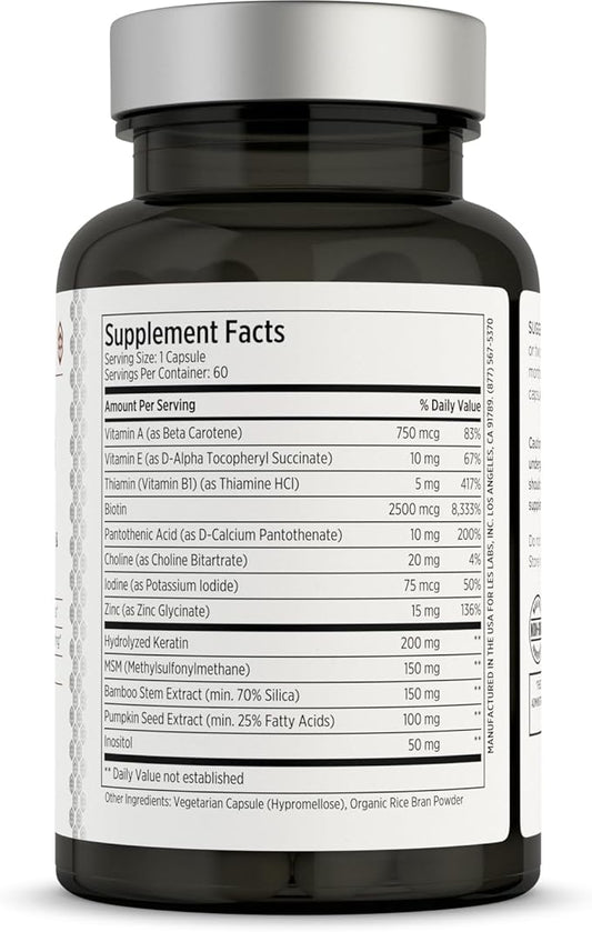 LES Labs Hair Health – Hair Growth & Nails Supplement, Improved Thickness, Strength & Fullness – Keratin, Biotin, Pumpkin Seed & MSM – 60 Capsules