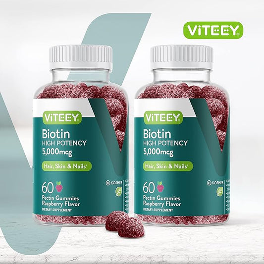Biotin Gummies for Hair Skin Nails 5,000mcg - Hair Growth Gummies, Healthy Skin Glow, Strong Healthy Nail Growth - Vegan, Gluten Free, Gelatin Free, GMO Free - Tasty Chewable Raspberry Flavor
