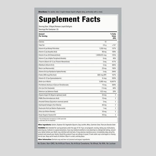 Piping Rock Hair Skin and Nails Vitamins | 165 Softgels | 5000 mcg of Biotin Extra Strength | with Argan and Coconut Oil | Non-GMO, Gluten Free Supplement