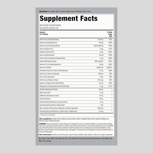 Piping Rock Hair Skin and Nails Vitamins | 120 Caplet Pills | with Collagen | 5000 mcg of Biotin | Non-GMO, Gluten Free Supplement