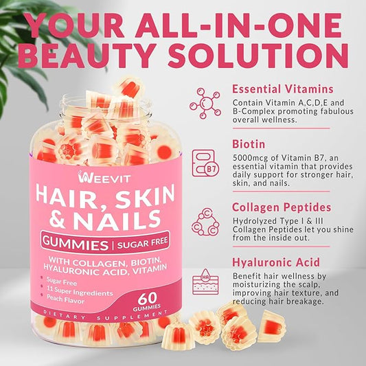 Hair Skin and Nails Gummies - Vegan Biotin 5000mcg Vitamins for Women & Men Supports Faster Hair Growth, Stronger Nails, Glowing Skin