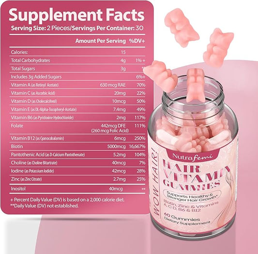Biotin Gummies- Hair, Skin and Nails Vitamins for Men and Women, Supports Hair Growth and Stronger Nails, Hair Vitamin Gummies, Vitamin B7-60 Gummies