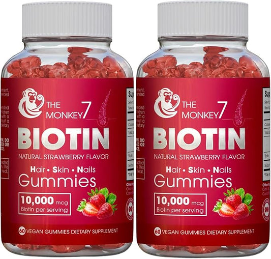 Biotin Gummy Bears Hair Growth Products Biotin 10000mcg | Biotin Gummies Hair Skin and Nails Vitamins Sugar Free Non GMO Gluten Free 60 Gummies 30 Day Supply - 2 Pack