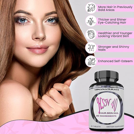 HSN 40 Hair Skin and Nails Growth Vitamins for Women. Biotin 10000 mcg, Keratin, Collagen, for Thicker, Stronger Hair. Tight, Smooth and Soft Skin. Healthy Nails.