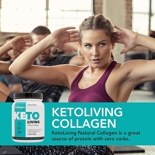 Natures Plus KetoLiving Natural Collagen, Unflavored - 1.36 lb Tub - Ketogenic Protein Powder - Supports Immune & Gut Health, Joint Mobility & Hair, Skin & Nails - Gluten-Free, Non-GMO - 28 Servings