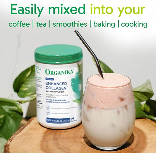 Organika Enhanced Relax Collagen Peptides Powder with L-Theanine & Magnesium Bisglycinate (8.82 oz - 250 g): Enriched Collagen Powder for Women & Men - Skin, Hair, Joints - Sleep, Vitality, Relaxation