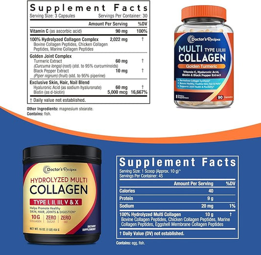 Doctor's Recipes Multi Collagen Peptides Powder 16oz and Multi Collagen Capsules 90 Caps