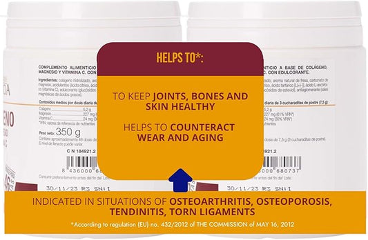 2 Pack - Ana Maria Lajusticia | Hydrolisate Collagen Powder with Magnesium and Vitamin C |for Healthy Skin, Nails, Hair and Ligaments | Natural Energy, Strawberry Flavour 350g