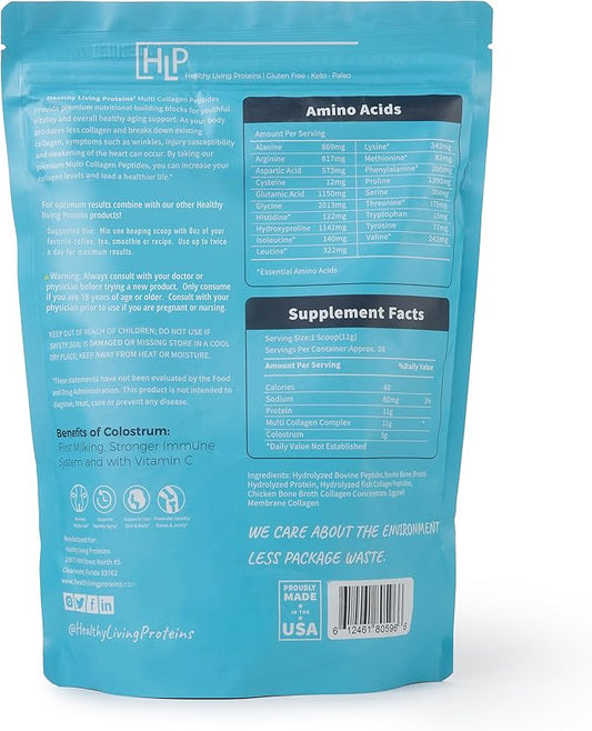 HLP Collagen Supplement for Better Absorption & Immune Support- Multi Collagen Peptides Powder with Colostrum- Improve Strength, Wellness & Vitality with Multi Collagen Protein- Unflavored- 38 Serving