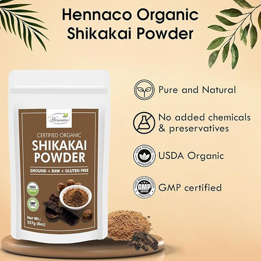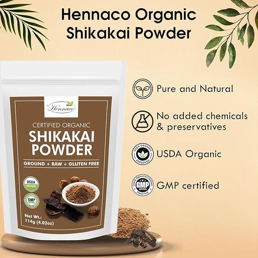 hennaco Organic Shikakai Powder| Acacia concinna Powder| Natural (4 OZ) 114 G