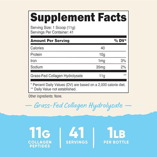 Nutricost Grass-Fed Collagen Powder 1LB (454 G) - Bovine Collagen Hydrolysate (Unflavored) - Collagen Peptides