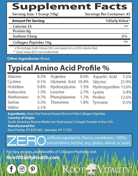Collagen Peptides Powder - Grass-Fed, Pasture-Raised Hydrolyzed Protein Supplement for Skin, Hair, & Nails - Non-GMO, Zero Sugar Daily Supplement for Men & Women (45 Servings)