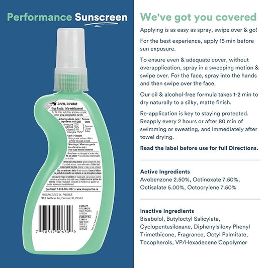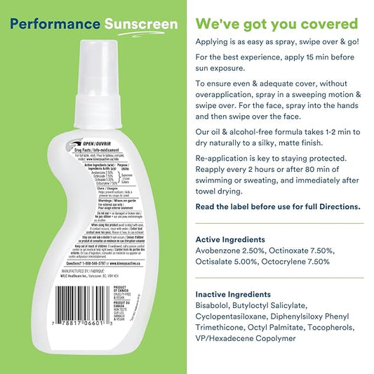 KINeSYS Performance Sunscreen Vanilla-Green Tea Scented Clear Spray Sunscreen, SPF 30, Hypoallergenic, Broad Spectrum UVA/UVB protection for Face & Body; Vegan, 700+ Sprays, 4 Fl Oz/120 mL