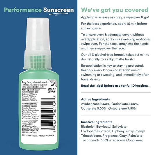 KINeSYS Performance Sunscreen Vanilla-Green Tea Scented Clear Spray, SPF 30, Hypoallergenic, Broad Spectrum UVA/UVB protection for Face & Body; Alcohol, Vegan, 170+ Sprays, 1 fl. Oz (Pack of 2)