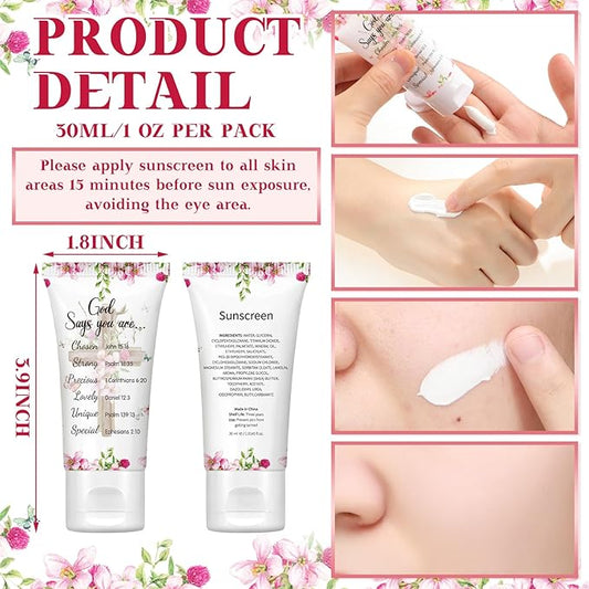 24 Pcs Sunscreen Bulk SPF 30 Mini Sunscreen Packets Travel Size Sunscreen Summer Party Gift for Women Girl Bible Verse Gift for Wedding Bbay Shower Party Favor Homeless Kit Supply(God Says)