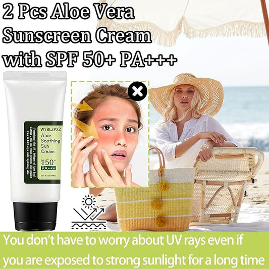2PCS Aloe Vera Face Body Sunscreen,Moisturizing Facial Sunscreen Lotion,Lightweight Refreshing Face Sun Screen for All Skin Types,Non-Greasy Sunblock Aloe Sun Cream SPF 50 PA+++ for Face