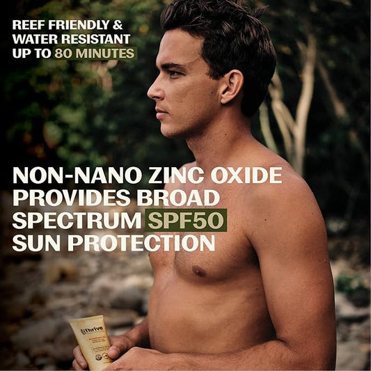 Thrive Natural Care Body Mineral Sunscreen SPF50 - Water Resistant Reef Safe Sunscreen with Broad Spectrum Clear Zinc Oxide Sun Block - Vegan, 5.8 Oz (Pack of 3)