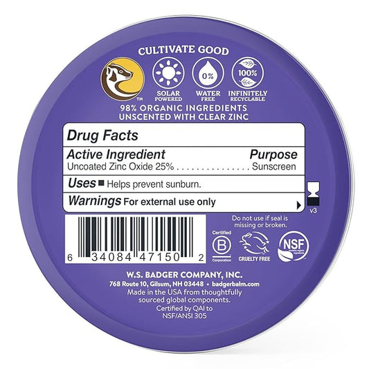 Badger Biodegradable Sunscreen in Metal Tin, SPF 50 Zinc Oxide Sunscreen with 98% Organic Ingredients, Reef Safe, Broad Spectrum, Water Resistant, Unscented, 2.4 oz