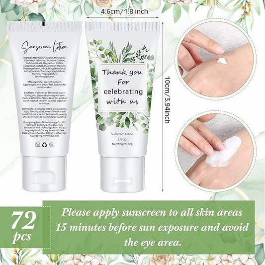 72 Pcs Mini Sunscreen Bulk for Summer Party Wedding SPF 30 Water Resistant Sunscreen Lotion Bulk 1oz Travel Size for Thank You Gifts Summer Party Wedding Supplies(Eucalyptus)