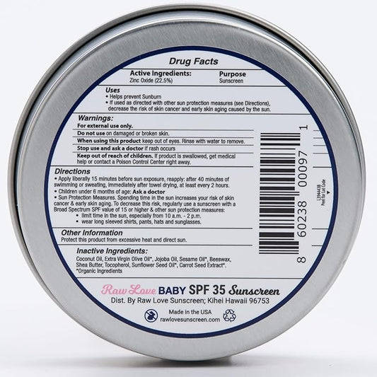 Raw Love Baby Sunscreen 0-6 Months & Up | Babies, Infant, Toddler, Kids Natural Mineral Sunscreen | Sensitive Skin, Fragrance Free Zinc Oxide SPF 35+ | No Chemicals, Reef Safe, Water Resistant | 4 Oz