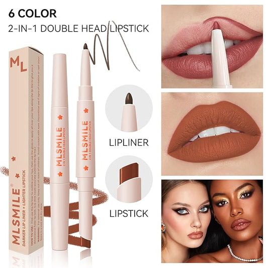 Nude MatteLip Liner And Lipstick Set, Double-end Matte Velvet Creamy Lip Liner Smudge-Proof Waterproof High Pigmented Nude Lip Liner Pencil Smooth Long Wear Lip Liner For Women Makeup(#05)
