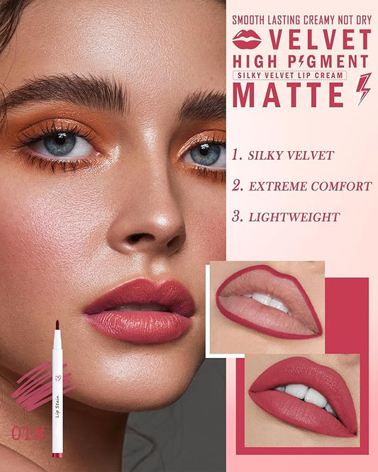 Lip Stain Marker Pen, Rose Red Lip Liner Longlasting