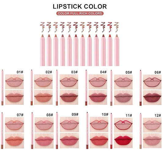 Dulele High Pigmented Matte Lip Liner Set, 12 High