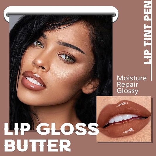 Lip Liner Marker Pen, Lip Stain Liquid Lip Liner Pencil Kit, Waterproof and Long Lasting Nude Lip Liner and Lip Gloss Combo, Non-Stick Cup Nourishing Clear Lip Butter Gloss Set Makeup