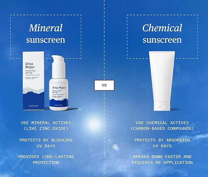 - URSA MAJOR FORCE FIELD SPF 30 - This natural, mineral-based SPF 30 is formulated with plant-derived ingredients that provide full-spectrum protection against UVA & UVB rays, blue light, and environmental pollution—all of which can damage your skin.