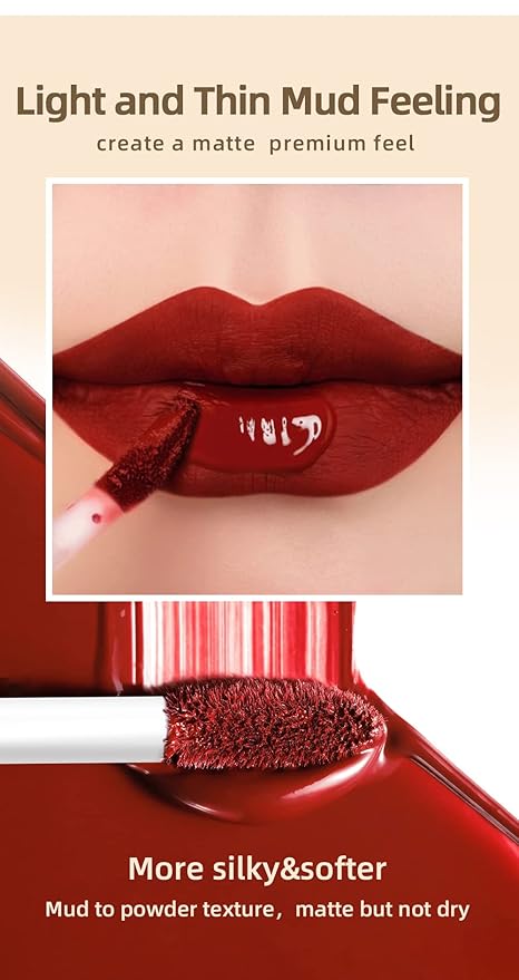- ★Not stick cup, do not fade, matte matte dry only lightly purse one's lips, otherwise it will stick, painted lip gloss finish is dry because is fog surface velvet effect
