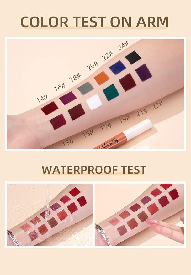 - ★12 Colors Velvet Liquid Lip Stick Set, full-size lip gloss of the most popular colors. Charming matte, long lasting and waterproof, Not stick cup, do not fade.