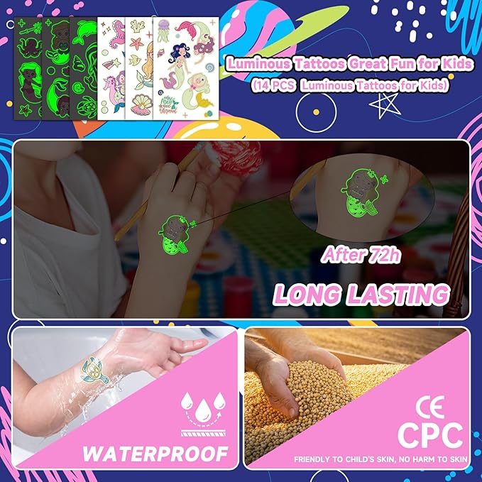 140+ Styles Luminous Kids Tattoos, Temporary Tattoo Stickers Games (Mermaid)