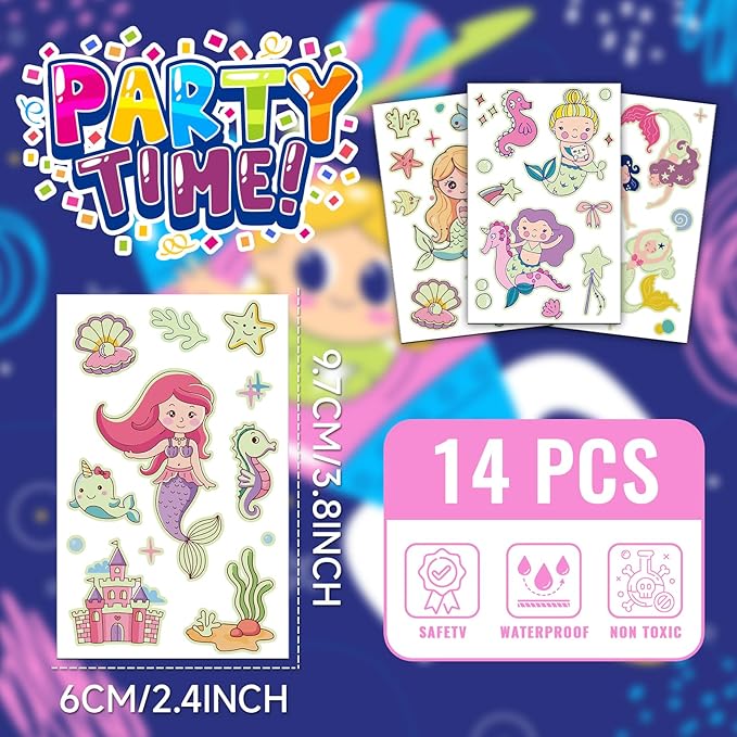 - 【Kids Party Supplies】kids temporary tattoos are suitable for glow parties, birthday parties, holiday pool parties, or a fun afternoon activity. They are also suitable for DIY crafts, toys for kids, goodie bag stuffers, party decorations, rewards, and other ornaments. If you use tattoo stickers as toys for children to play with at parties, they will be pleased.