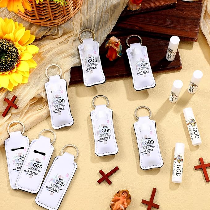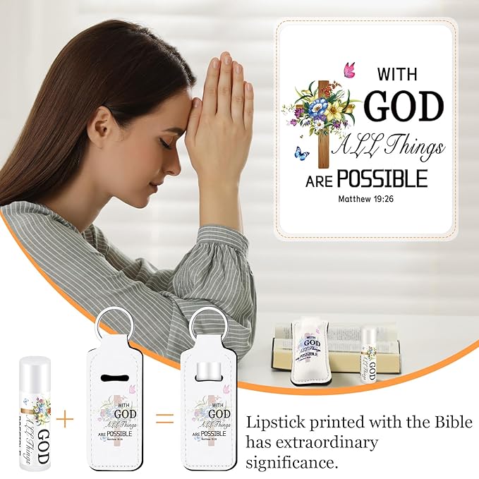 - Portable and Lightweight: the lip balm measures about 2.62 inches/ 6.65 cm high with lid, about 0.65 inches/ 1.65 cm in diameter; Bible keychains are around 3.94 x 1.5 inches/ 10 x 3.8 cm, portable and lightweight, so you can put them into your handbags, makeup bags, suitcase and more