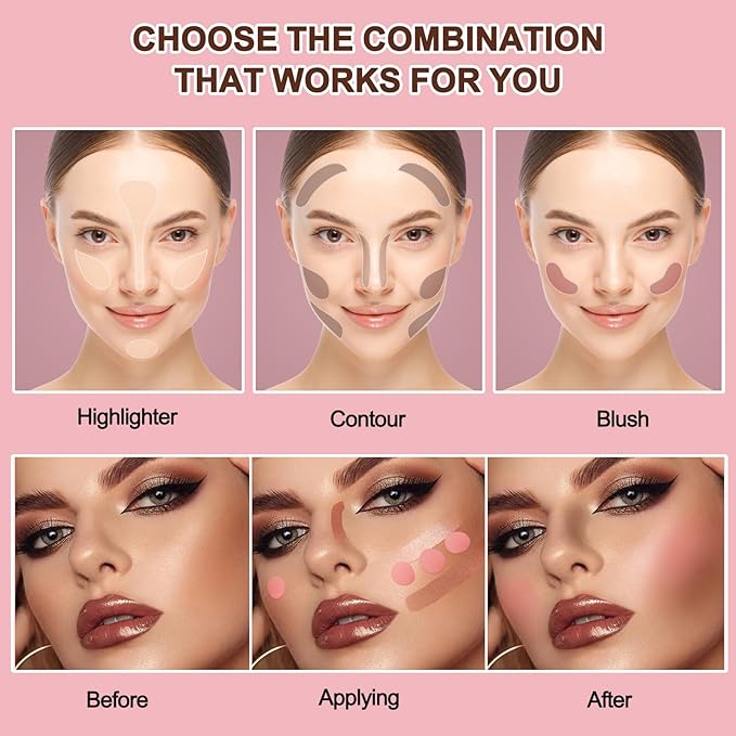 - 【Easy To Use】First apply foundation on the face, then use the blush, highlighter and bronze contour stick to gently slide on the forehead, cheeks, jawline or nose, and finally use the soft makeup brush on the other end to smooth it out to ensure a natural and perfect makeup.