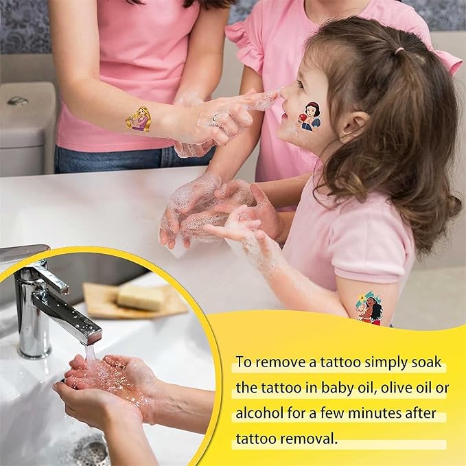 - 【Package Includes】 40Pcs Princess Temporary Tattoos with 20(2 of each) different designs and colors, each Temporary Tattoos measures 2” x 2”.