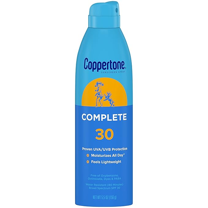 - Includes three (3) 5.5 ounce bottles of Coppertone Complete SPF 30 Sunscreen Spray