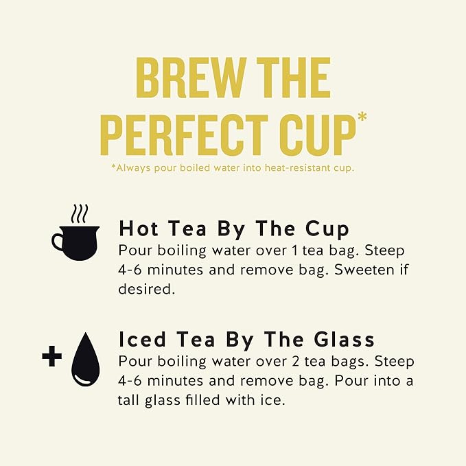 - Your Perfect Cup: Steep the tea bag in hot water for 4-6 minutes and remove the bag for comforting hot tea. Use the same process over 2 tea bags and serve over ice for a refreshing glass of iced tea.