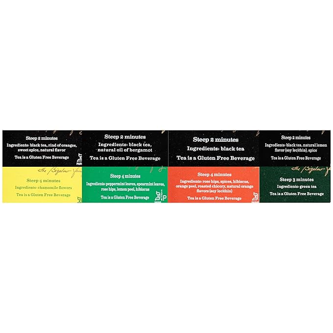 - A Tea For Every Occasion: This well-rounded variety pack includes Constant Comment, Earl Grey, English Teatime, Lemon Lift, Cozy Chamomile,Mint Medley, Orange and Spice. Choose between black, green and herbal teas