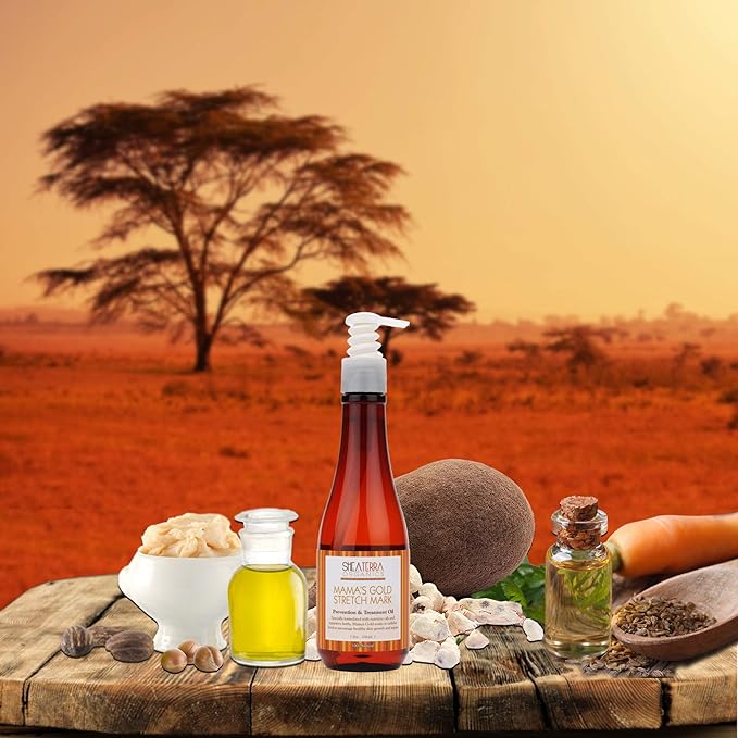 Shea Terra Organics Mama and Baby Collection | Mama’s Gold Stretch Mark Wonder Oil| Non Toxic All Natural Maternity & Postpartum Belly Oil for Stretch Marks Prevention & Cellular Skin Repair – 8oz