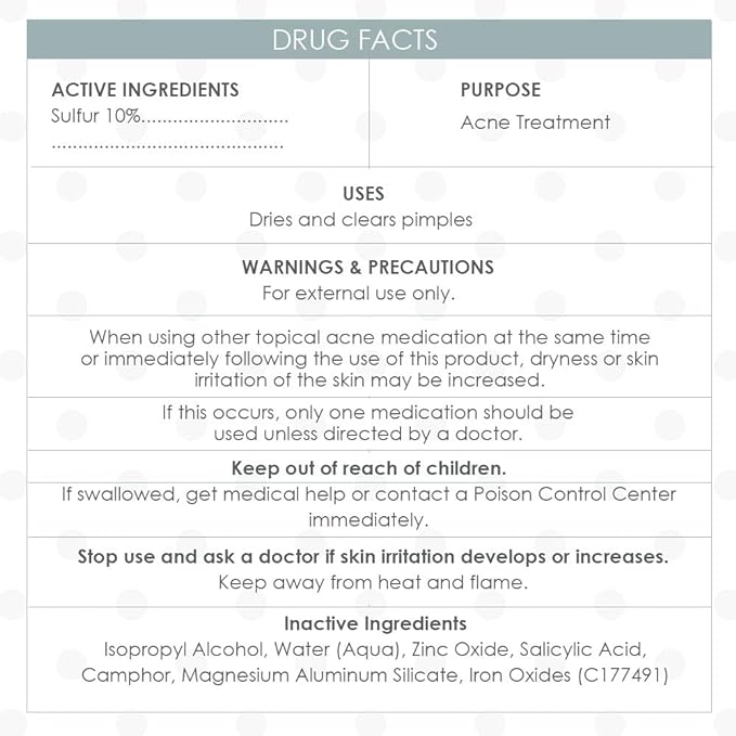 - Infused with Salicylic Acid and Zinc Oxide: This acne spot treatment lotion is formulated to help exfoliate dead skin cells, allowing the all-natural drying agents to sink deeply into the pores to treat acne-causing bacteria while soothing the skin.