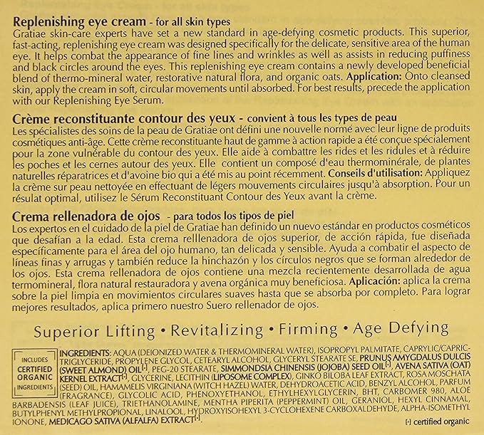 Gratiae Organics Replenishing Eye Cream, 1.02-Ounce