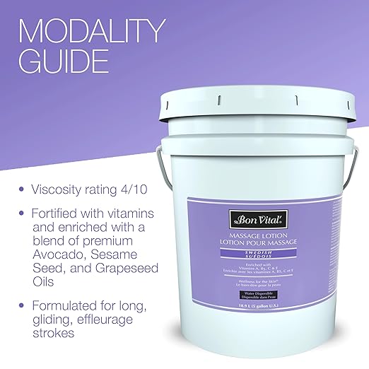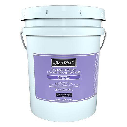 Bon Vital' Swedish Massage Lotion for Skin Tone Improvement, Dry Skin Repair, Increased Circulation, and Stress Relief, Great for Swedish and Sports Massages, 5 Gal, Label may Vary