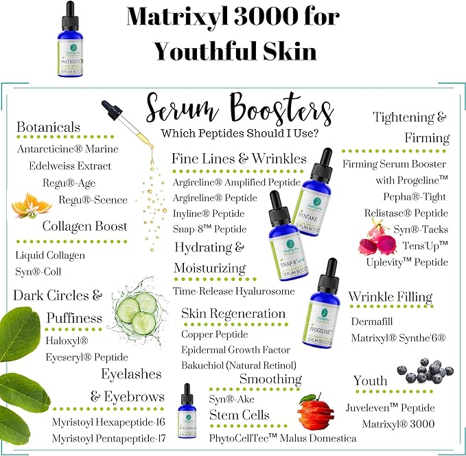 - ACTIVE INGREDIENT - Matrixyl 3000 Serum - Matrixyl 3000, featured in this anti-aging serum, is a powerful peptide-based ingredient designed to reduce the appearance of fine lines and wrinkles. It contains Palmitoyl Tripeptide-1 and Palmitoyl Tetrapeptide-7, ideal for those seeking a serum for face anti-aging. Pair it with Argireline for smoother, younger-looking skin.