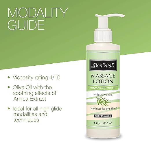 Bon Vital' Therapeutic Touch Massage Lotion with Olive Oil to Repair Dry Skin & Soothe Sore Muscles, Skin Therapy Lotion, Moisturizes Skin During Massages for Smooth, Soft Skin, 8 Oz, Label may Vary