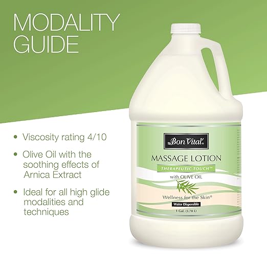 Bon Vital' Therapeutic Touch Massage Lotion with Olive Oil to Repair Dry Skin & Soothe Sore Muscles, Skin Therapy Lotion, Moisturizes Skin During Massages for Smooth, Soft Skin, 1 Gal, Label may Vary