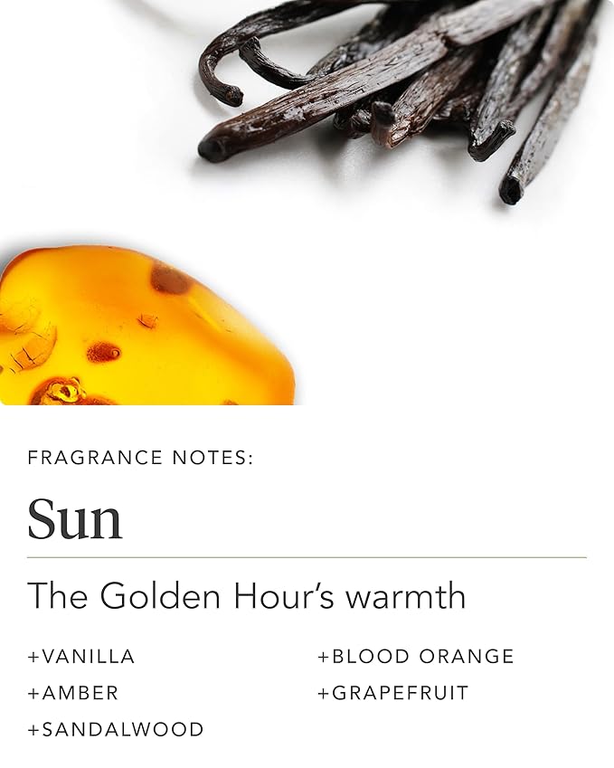 - CALMING & SENSUAL. During the Golden Hour, a warmth envelopes the skin and all stress melts away. A warm and buttery blend of vanilla, sandalwood and amber, laced with top notes of blood orange and grapefruit that linger long after the sunset.