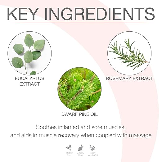 - Scents of Rosemary, Peppermint, Eucalyptus, Melissa, and Chamomile essential oils aid in relaxation, Dwarf Pine Oil intensifies a back massage or neck massage with a light warming sensation to further ease muscle aches